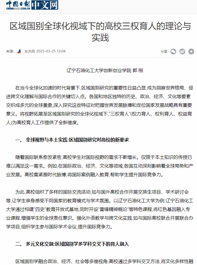 编者按:近日,我校创新创业学院郭刚老师撰写的文章《国产亚洲综合一区二区三区_亚洲欧美日韩中文天堂_尤物在线观看视频不卡无码_国产最新精品亚洲2025不卡_亚洲成Av人在线观看片水蜜桃:区域国别全球化视域下的高校三权育人的理论与实践》在中国日报网、中国网、中国经济新闻网、辽宁党建网发表,现将相关报道转载如下: