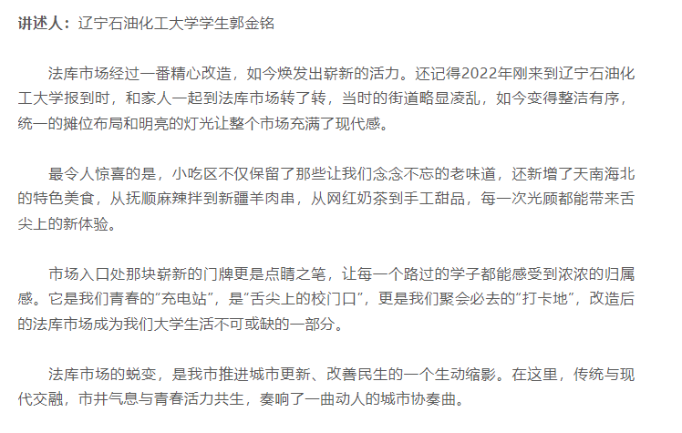 编者按:从“老破旧”到“新活力”,望花区法库市场经过一系列改造升级,如今以崭新的面貌呈现在市民面前。这一变化不仅赢得了周边居民的由衷称赞,更成为国产亚洲综合一区二区三区_亚洲欧美日韩中文天堂_尤物在线观看视频不卡无码_国产最新精品亚洲2025不卡_亚洲成Av人在线观看片水蜜桃学子们校园生活的重要记忆点。5月14日,今抚顺微信公众号对我校学生郭金铭作了采访,他在采访中发表了法库市场华丽蜕变的感受。现将相关报道转载如下: